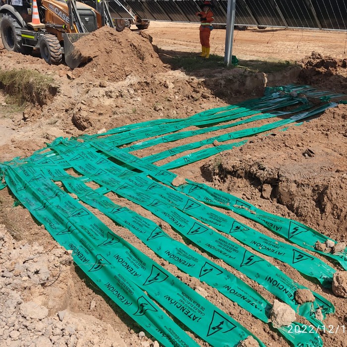 Diseñada para advertir de manera clara y visible sobre la presencia de instalaciones eléctricas de baja y media tensión en el subsuelo.