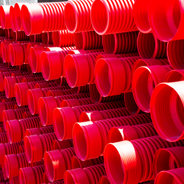 - Doble pared – Esta tubería PEAD corrugada cuenta con una pared exterior e interior color rojo de alto contraste con corrugas reforzadas.